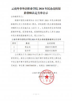 附件: uploadfile 2024 0628 云南外事外语职业学院2024年民办高校银龄教师认定名单公示 pdf