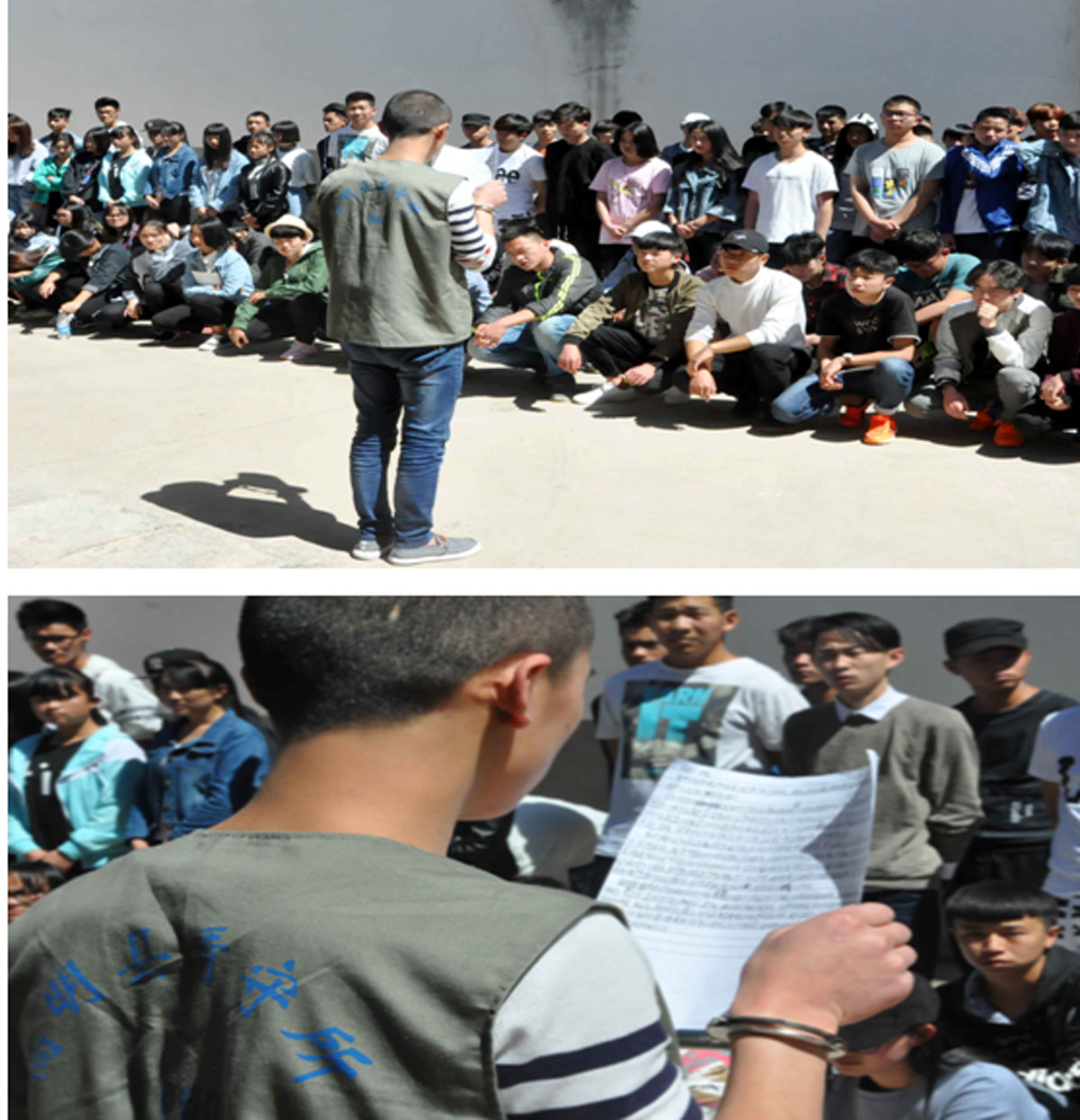 此次活动得到了嵩明县公安局相关领导的大力支持,活动首先安排了在押人员现身说法,3名在押人员分别讲述了自己为满足个人欲望、或是交友不善、性格暴躁冲动,控制不住自己的行为,最终从在校学生蜕变为阶下囚的悲剧,希望学生们吸取自己的教训,努力学习,树立正确的人生观和价值观,筑牢预防违法犯罪的思想防线,做一个思想健康、向上向善的好青年。随后,嵩明县看守所李所长向师生们介绍了看守所基本情况及对在押人员的人性化管理和规范化管理,指引师生们有序参观了看守所监区,巡视监控中心,零距离感受监所生活气氛。
