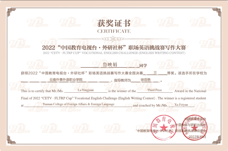 2024“中国教育电视台·外研社杯”职场英语挑战赛——写作大赛省赛即将在全国各地拉开帷幕。大赛紧跟时代热点,优化比赛机制,以聚焦新产业、新职业、新技术的竞赛内容和智能化、高效率的竞赛及评阅系统,为学生搭建专业、灵活、多元的竞技平台。写作大赛主要考查学生的英文书面沟通、跨文化交流、逻辑分析、人文思辨等能力及素养,促进学生英语写作和应用能力的整体提高,为其未来职场发展和个人持续发展奠定良好的基础。