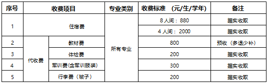 4.建筑消防技术、现代通信技术、安全防范技术专业额外加收服装被装费2000元(第一学年)。