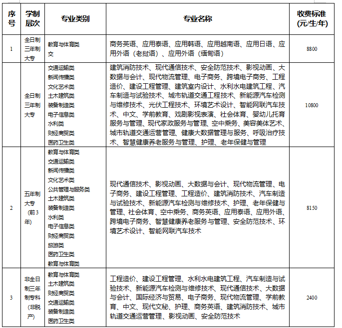 2.新增设专业收费标准按专业类别收取。
