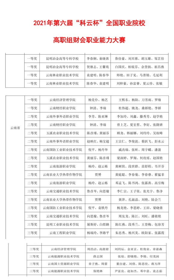 恭喜我校代表队在2021年第六届“科云杯”全国职业院校高职组财会职业能力大赛中取得优异成绩