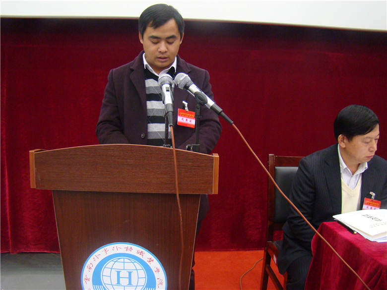 党委委员、党群部部长、工会副主席邓超作了《云南外事外语职业学院关于第一届三次教职工代表大会提案落实情况的报告》。