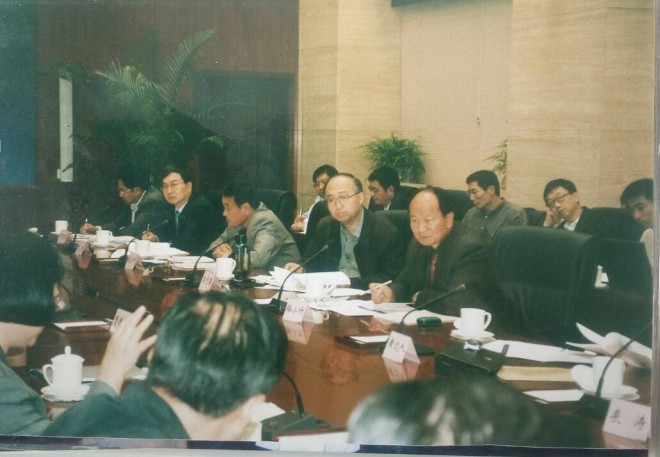 国家有突出贡献专家、博士生导师、校长骆小所教授(右一)在2004年10月13日孔子学院筹备会上发言