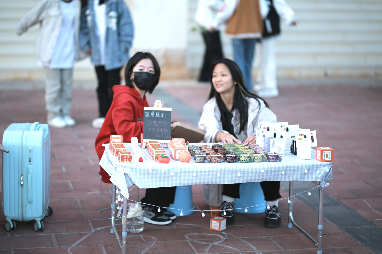 4月4日至9日,云南外事外语职业学院在博雅广场开展“逐梦青春,集攒未来”大学生创业集市地摊活动。