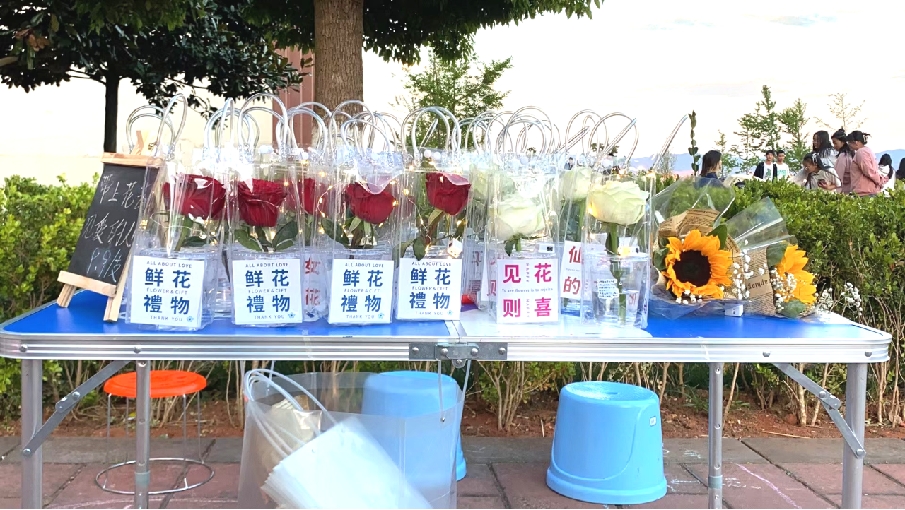 电商学院2020级电子商务2班史超同学的摊点,售卖五彩斑斓的鲜花,花朵可以表达自己丰富的情感,买一朵美丽的花送给你最爱的人吧!