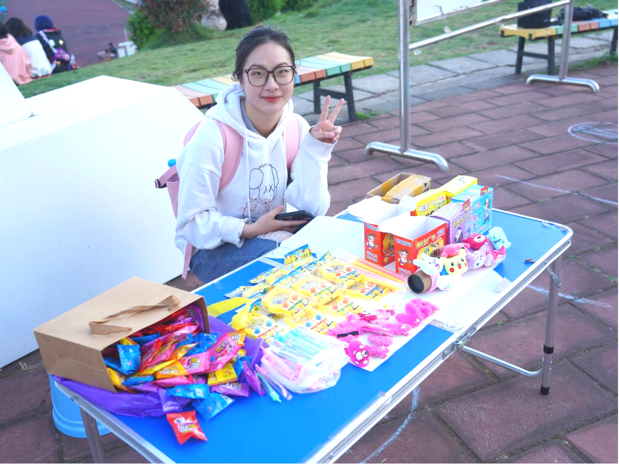 “摊主”们纷纷带上自己的商品,精心设计自己的摊位,希望有更多的同学能光顾。摊位上,有售卖各类鲜花、饰品、玩偶涂鸦、手工艺品等。