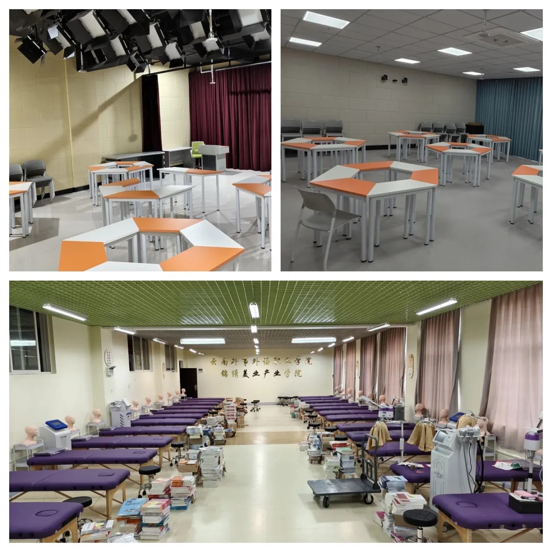 以行业前沿为标准,构建的"教学-实训-创新"一体化实践平台——智慧录播室与美容美体实训室,于8月中旬建成,将在新学期正式投用。