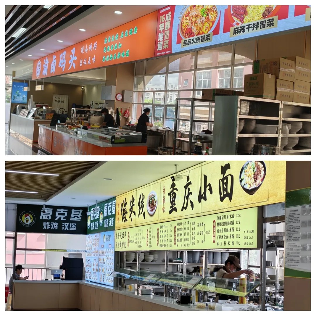 食堂在假期引进了25个新档口,涵盖了地方小吃、烧烤卤味等多元品类。开学前,学校组织全体餐饮工作人员进行食品安全及操作规范培训,确保餐饮服务安全规范,以全新的精神面貌与同学们见面。