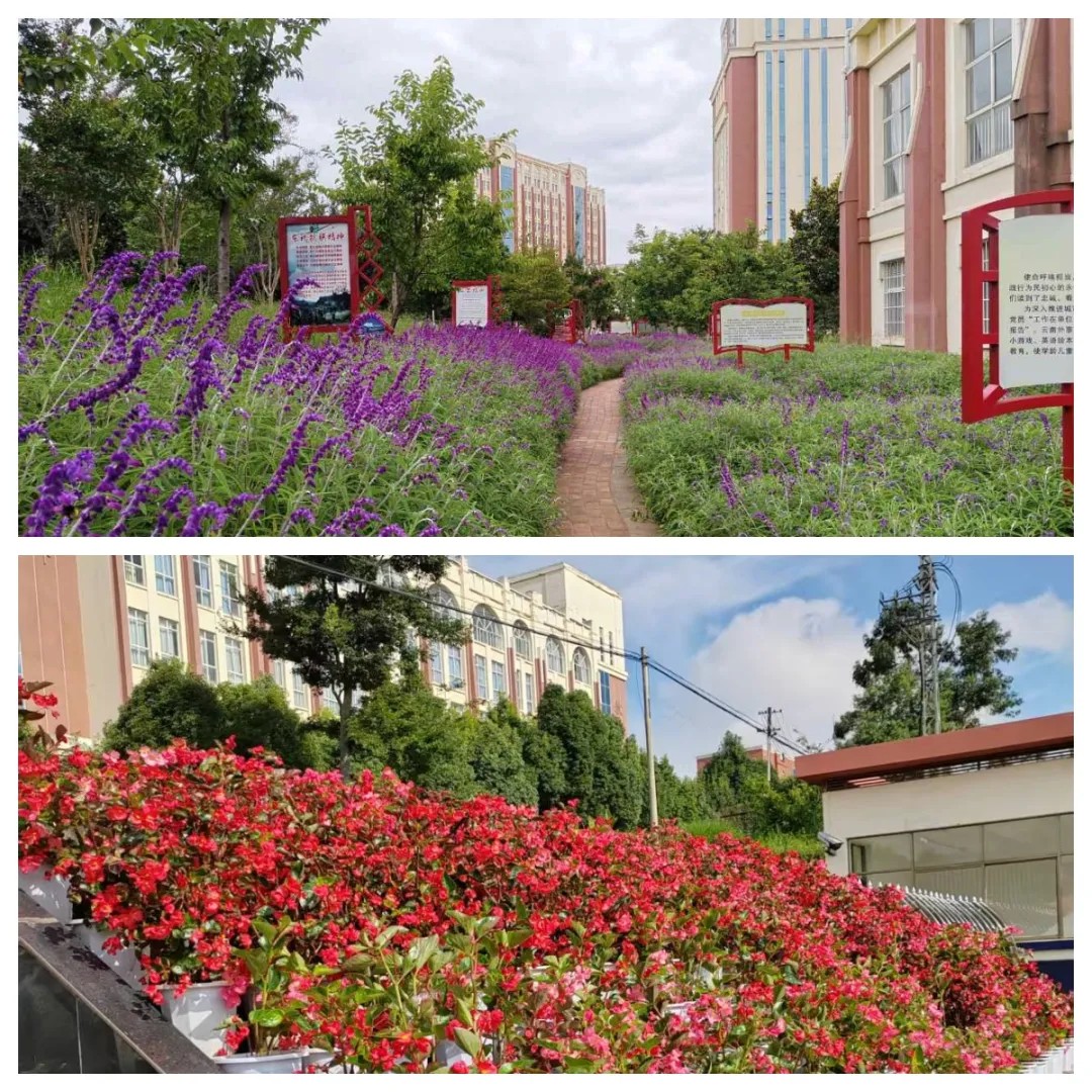 绿化保洁团队也在开学前完成了全校消杀、灌木修剪,花卉移栽,为校园增添了一道道靓丽的景观。