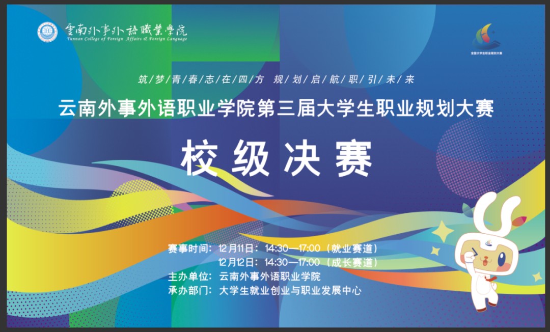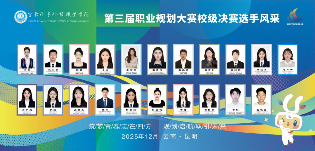 12月11日-12日,云南外事外语职业学院第三届大学生职业规划大赛校级决赛在报告厅成功举办。本次大赛由大学生就业创业与职业发展中心承办,以“筑梦青春志在四方,规划启航职引未来”为主题,旨在引导学生树立长远职业规划意识,增强生涯教育与就业指导实效。