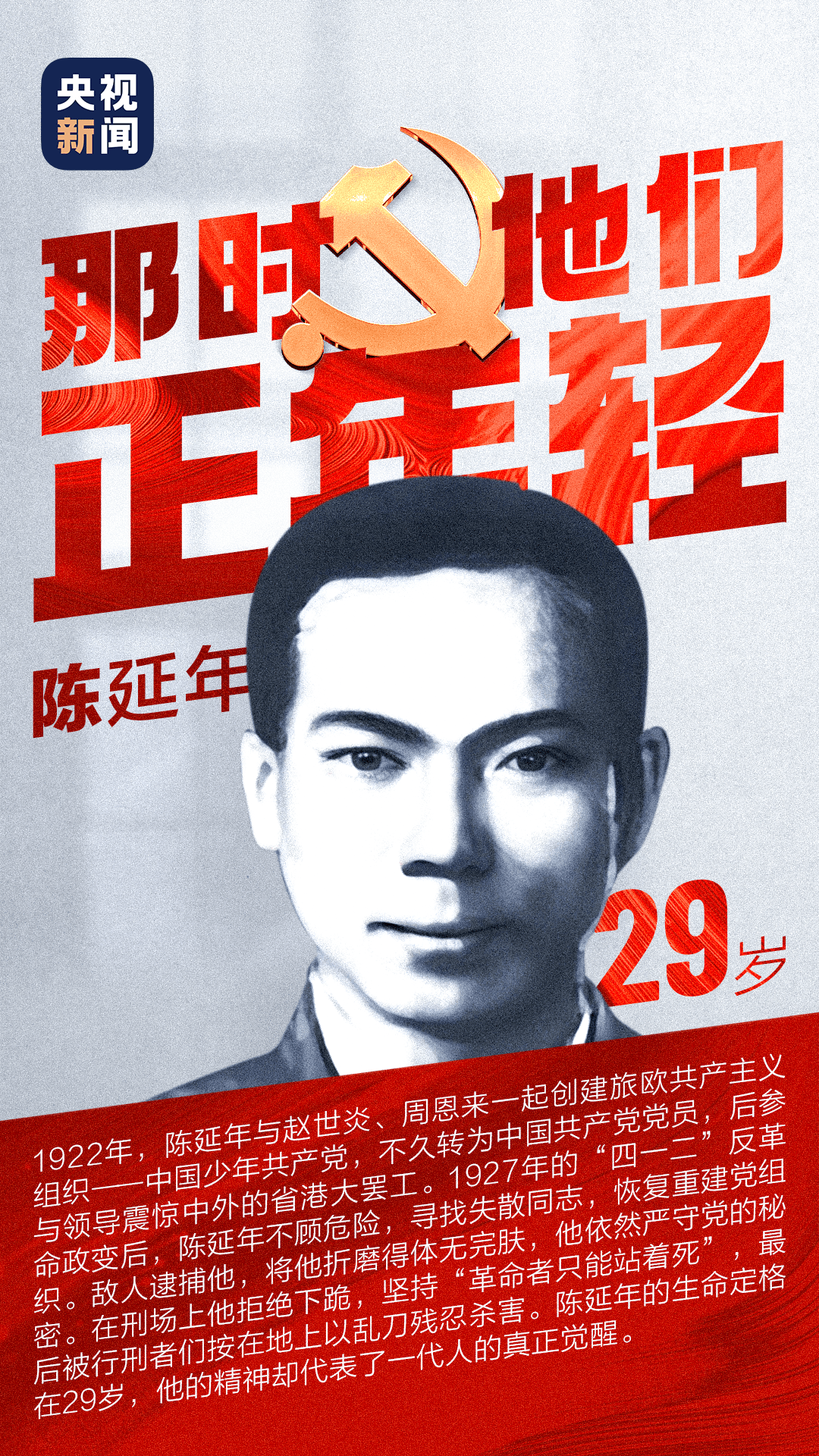 今天我们给大家带来的是陈延年的故事,希望大家铭记先辈。