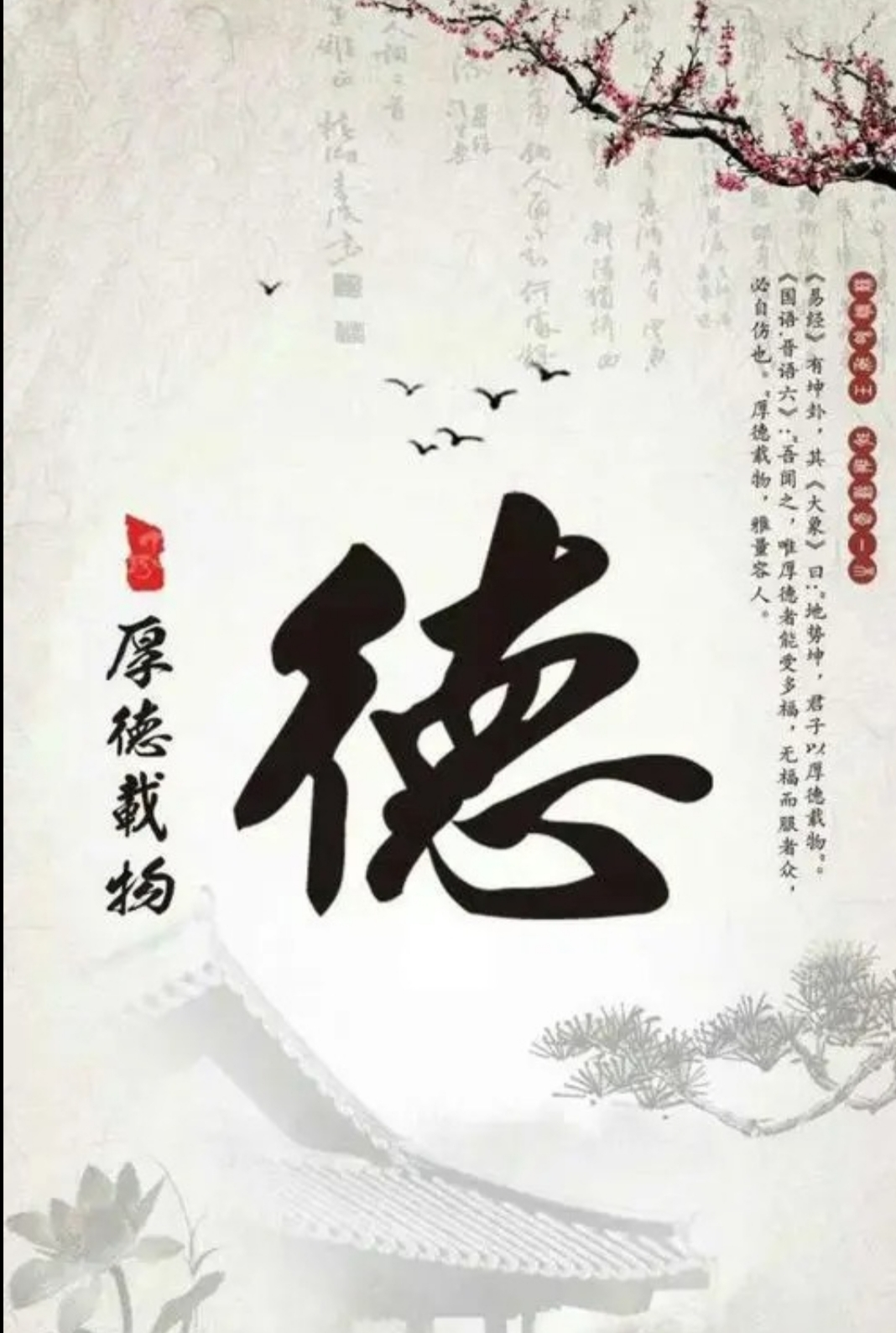 厚德是北京精神的人格化,是北京立德扬善的首善品质和人文精神的典型反映。“厚德”一词源于《周易》“君子以厚德载物”。中国古代把大德、培育高尚的道德品行、施人以德以及感恩等义,称作厚德。在中华文化中,“厚德”被视为最高道德理念。