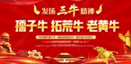 三牛精神是指为民服务孺子牛、创新发展拓荒牛、艰苦奋斗老黄牛的精神。